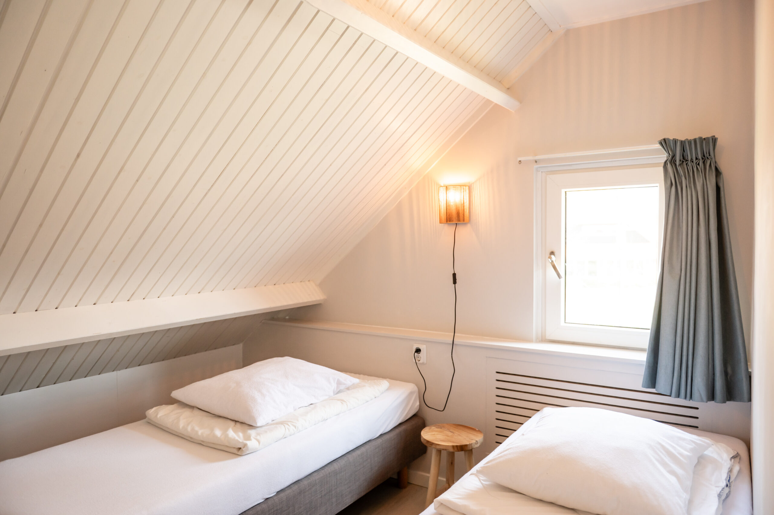 Alle 12 Betten haben Einzelbettdecken und Kissen.