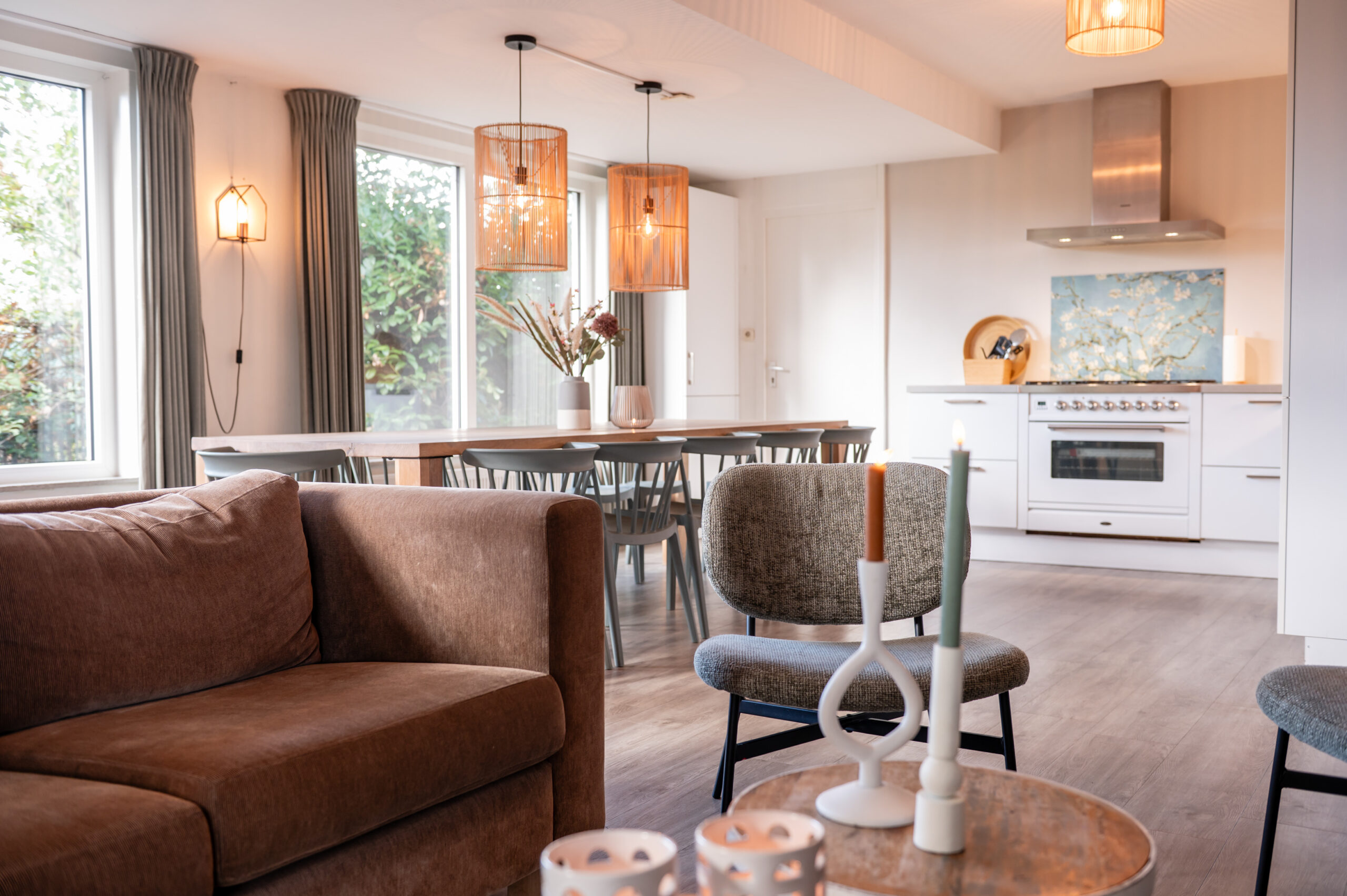 - Woonkamer open keuken, eettafels en gezellige zithoek.