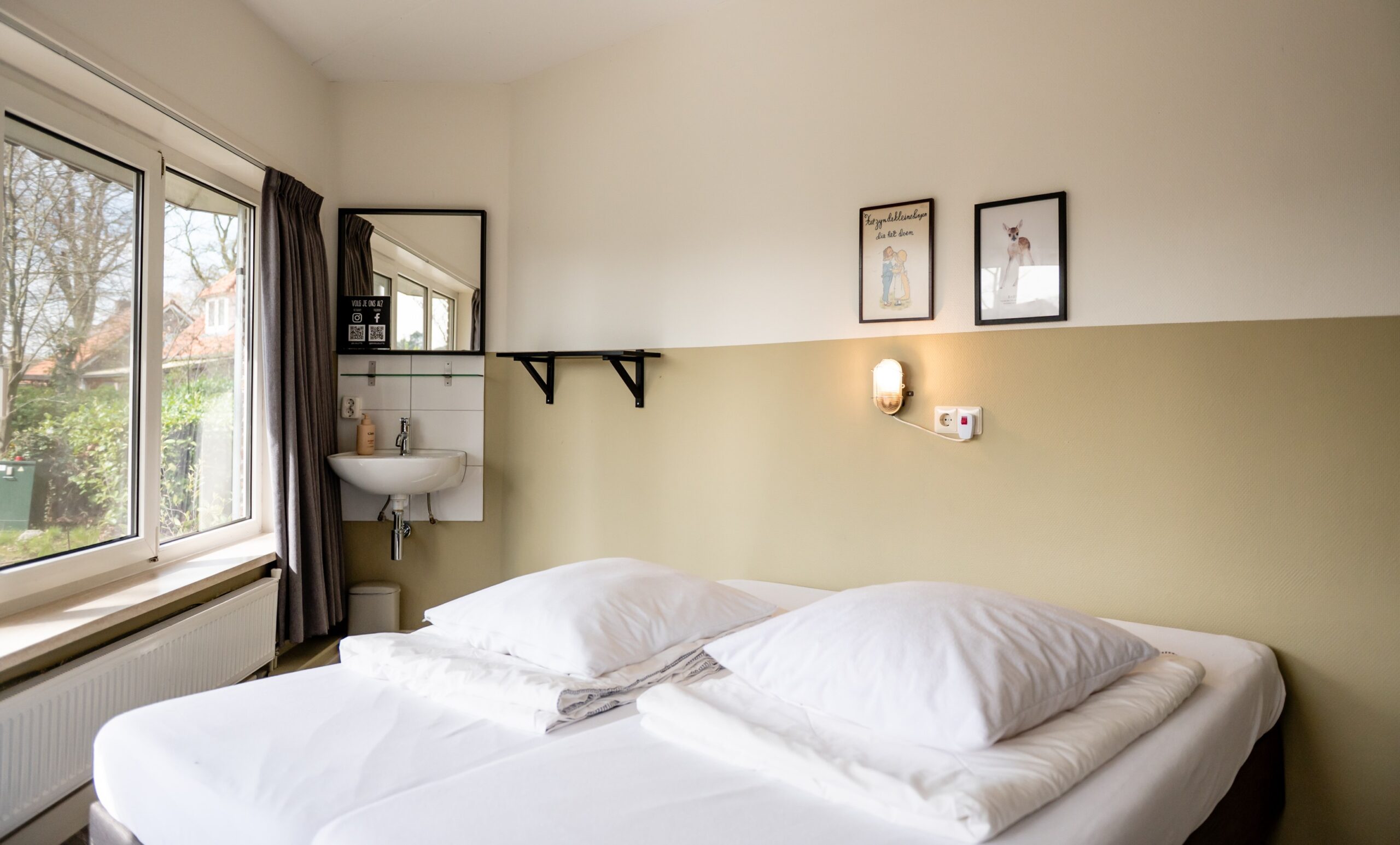 – twee slaapkamers met 2 eenpersoons bedden en een wastafel
